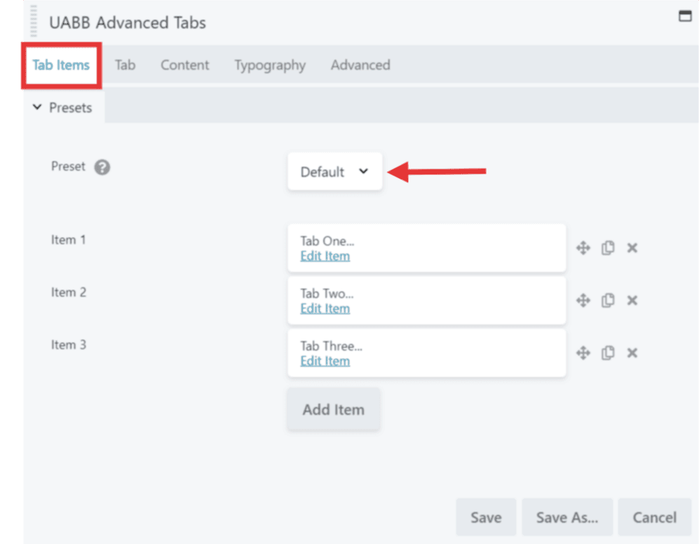 Step 3: While working with UABB modules, you can simply choose any style from a list of professionally designed, sleek, and classic presets. Presets will help you quickly create great designs. You can select the preset of your choice here. But before changing presets, save the content, you added to the module. Otherwise, your content will be overwritten with the default one.