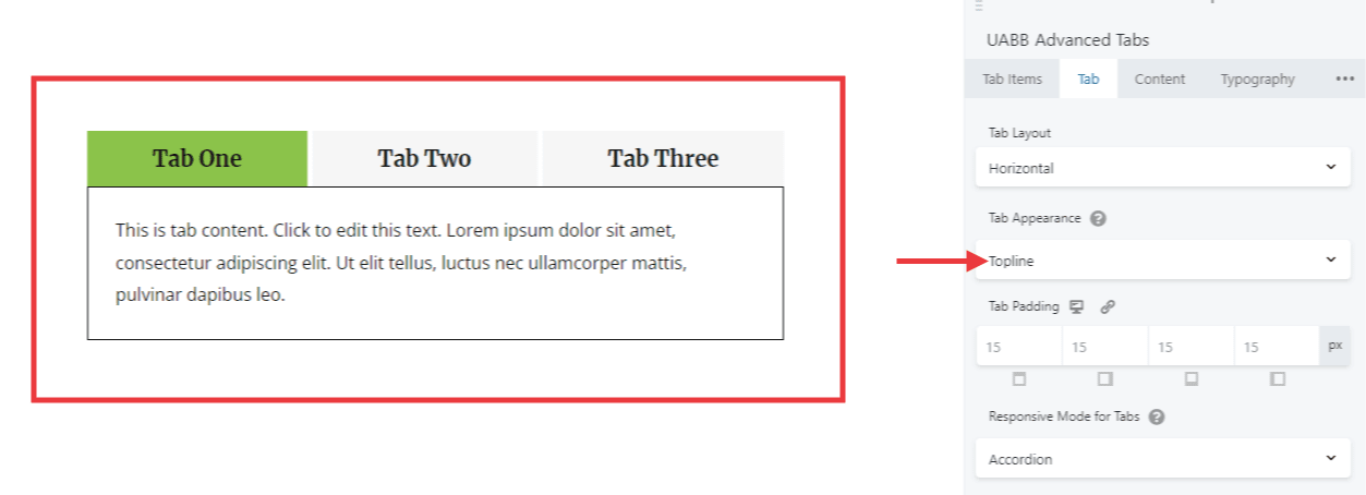 Topline: When you set the tab appearance to Topline, it will look like this.
