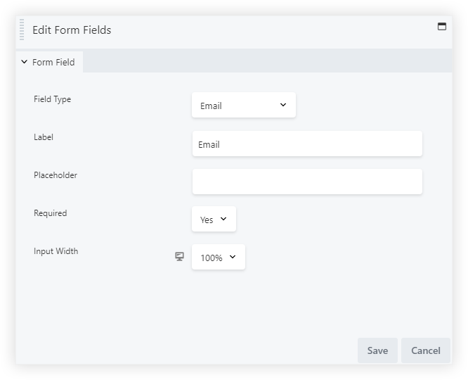 On individual edit form field, you have the option to manage the Required, change the field type, edit the Label, Placeholder, Enable Required and Input Width option.