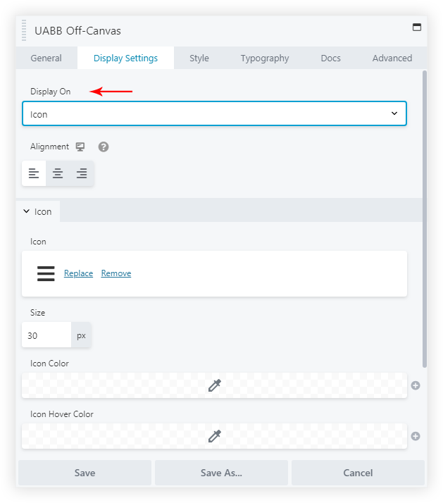 Step 3 – Now go to Display Settings and choose Display On – Button/ Icon / Custom Class / Custom ID.