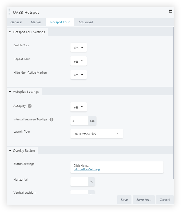tour on autoplay, you can decide when to start it. This option will allow a user to start the tour on the click of a button or when hotspot comes in the viewport. - Overlay Button: This will allow starting the tour if in the above option button click is selected. Once