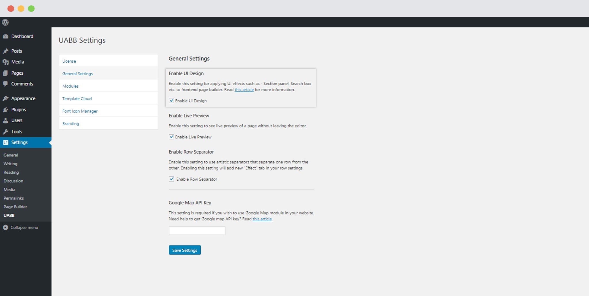 - UABB Global Settings