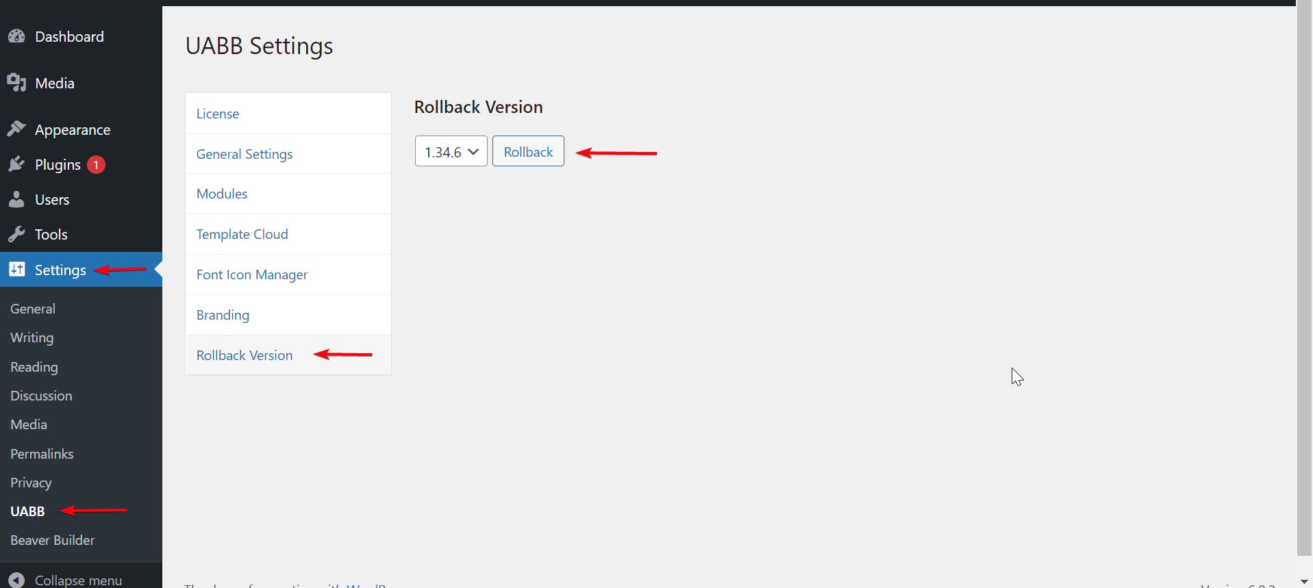 This document will show you how to roll back to your previous version of the Ultimate Addon for Beaver Builder in a few simple clicks. You can easily downgrade to the previous versions using the “Rollback Version” feature.