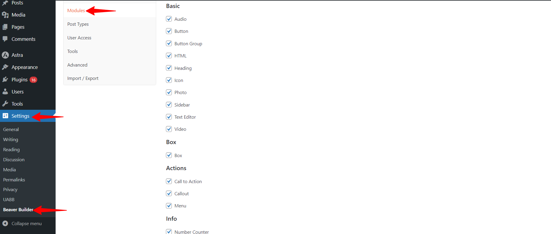 3. Check Beaver Builder Module Settings: Verify that the modules are enabled in the Beaver Builder settings.