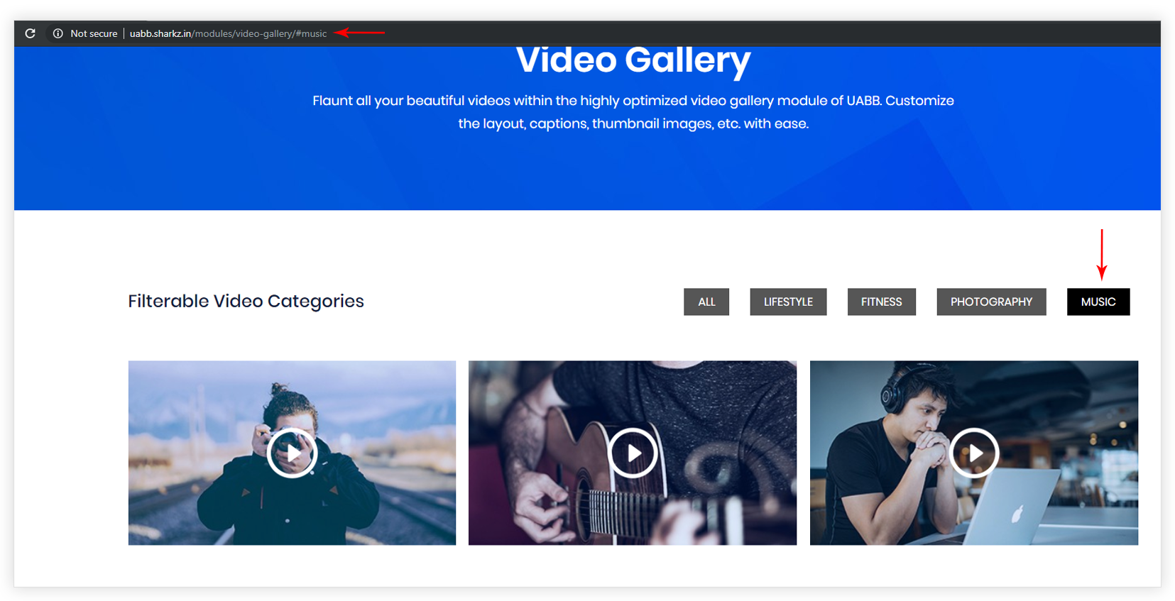 Step 1 – Let’s say you have a category ‘Music‘ in the video gallery.