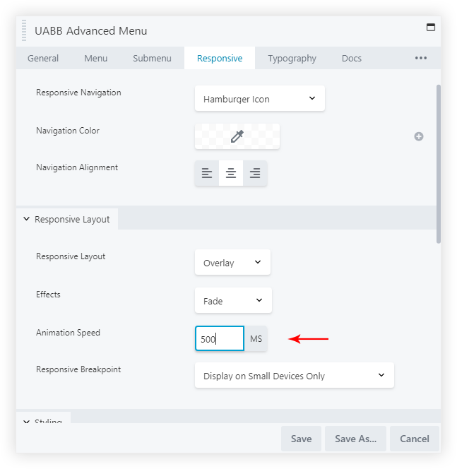 Select Responsive Layout > Overlay in the Responsive Tab.