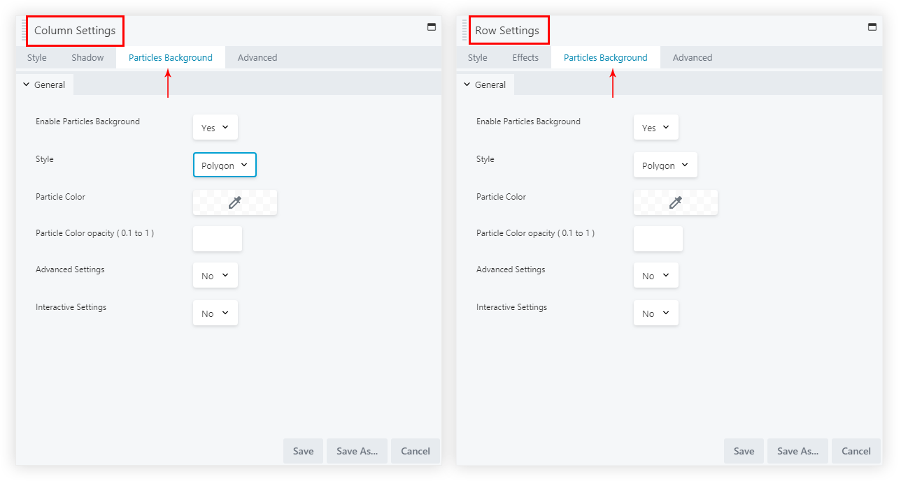 UABB – Particle Backgrounds is available with all existing Beaver Builder background options like row, column background. To set the particle background for a row, edit the row, go to the Particle Backgrounds tab.