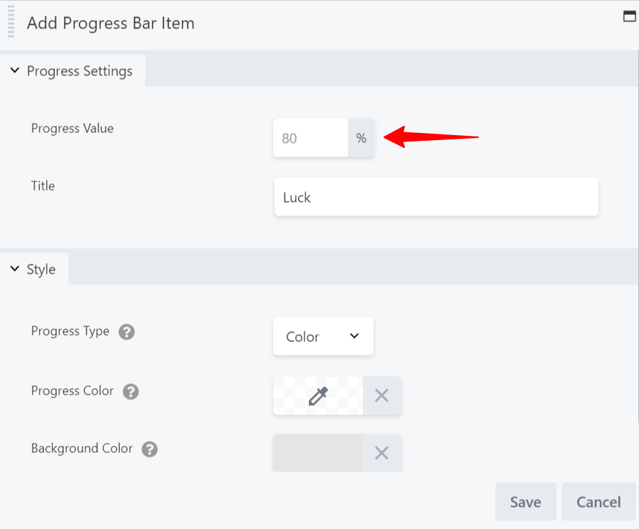 Once you click on edit progress bar item, you can access the Progress Settings: –