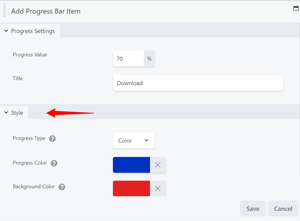 Here, you can customize the visual appearance of the Progress Bar. This includes options for colors, shapes, and other style-related settings to make it match your website’s design.