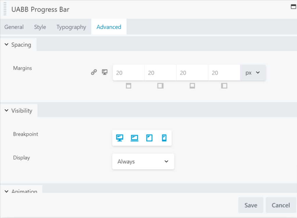 Here, you can tweak and fine-tune things. It’s like your control center for taking the Progress Bar module to the next level, allowing you to play around with more advanced styling and functionality options.