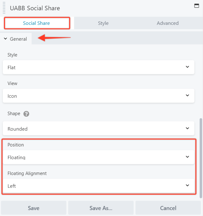 This feature would basically allow you to make the Social Icons float and also position it on the left and right. You can find this option under the new section on the Social Share modules’ first tab under the General section.