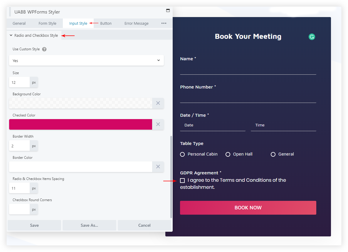 Have you ever wanted to style the checkboxes, radio buttons of the acceptance control in a WPForms? This is made possible with the WPForms Styler module of the Ultimate Addons for Beaver Builder!