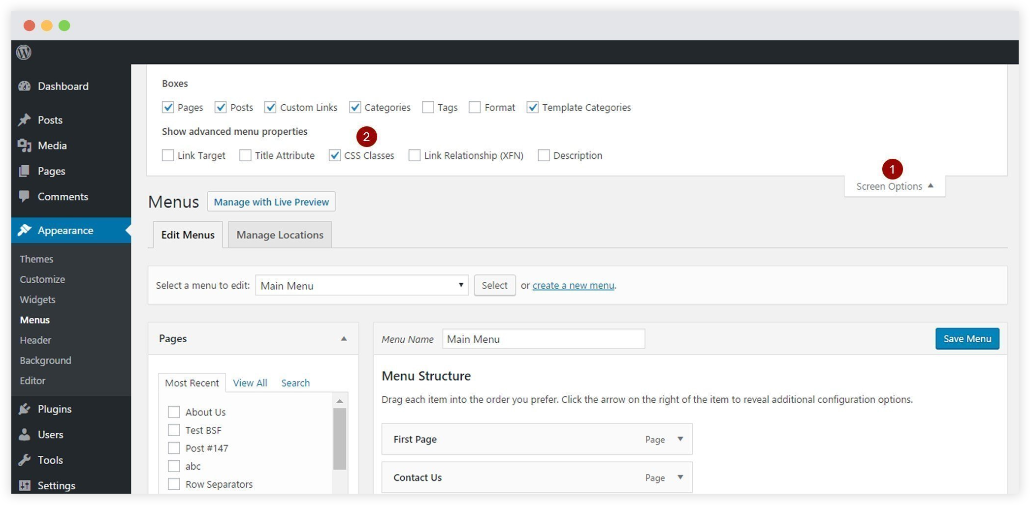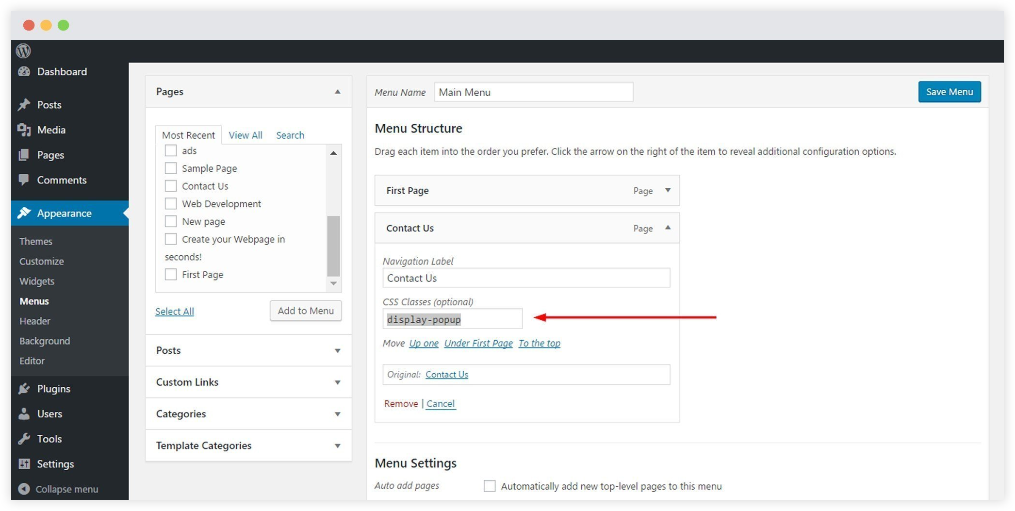 3. Now go to WordPress Dashboard -> Appearance -> Menu