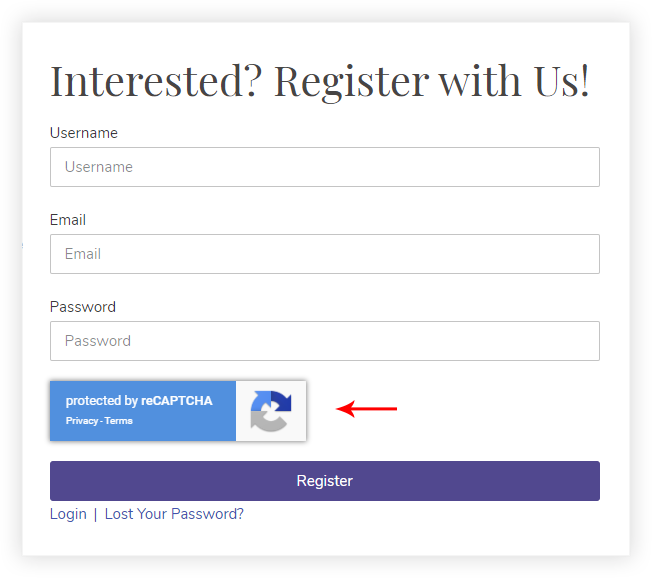 We would recommend using the reCAPTCHA v3 to make the registration form on your website spam and abuse-free. As it allows verifying a user or a bot without any user interaction.