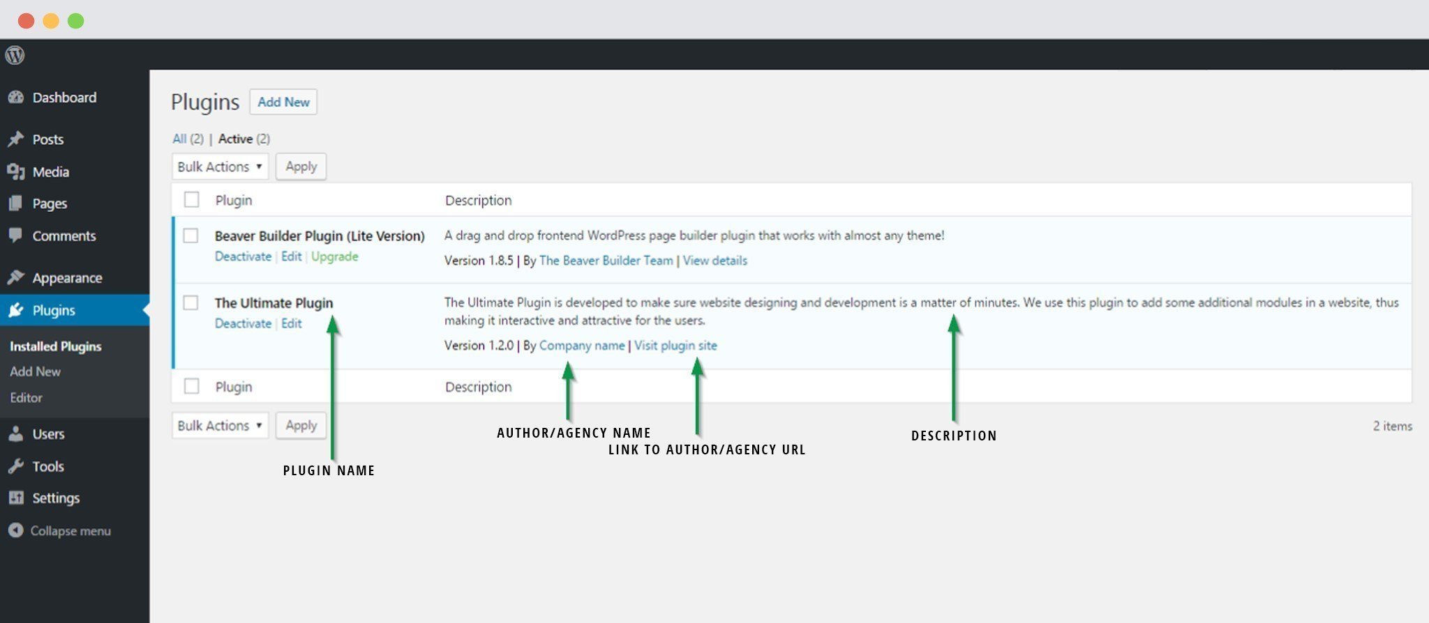 White label Branding is the ability to rename and present a product or a plugin as your own. This helps you hide the actual identity of the plugins used and lets you use your brand name instead.