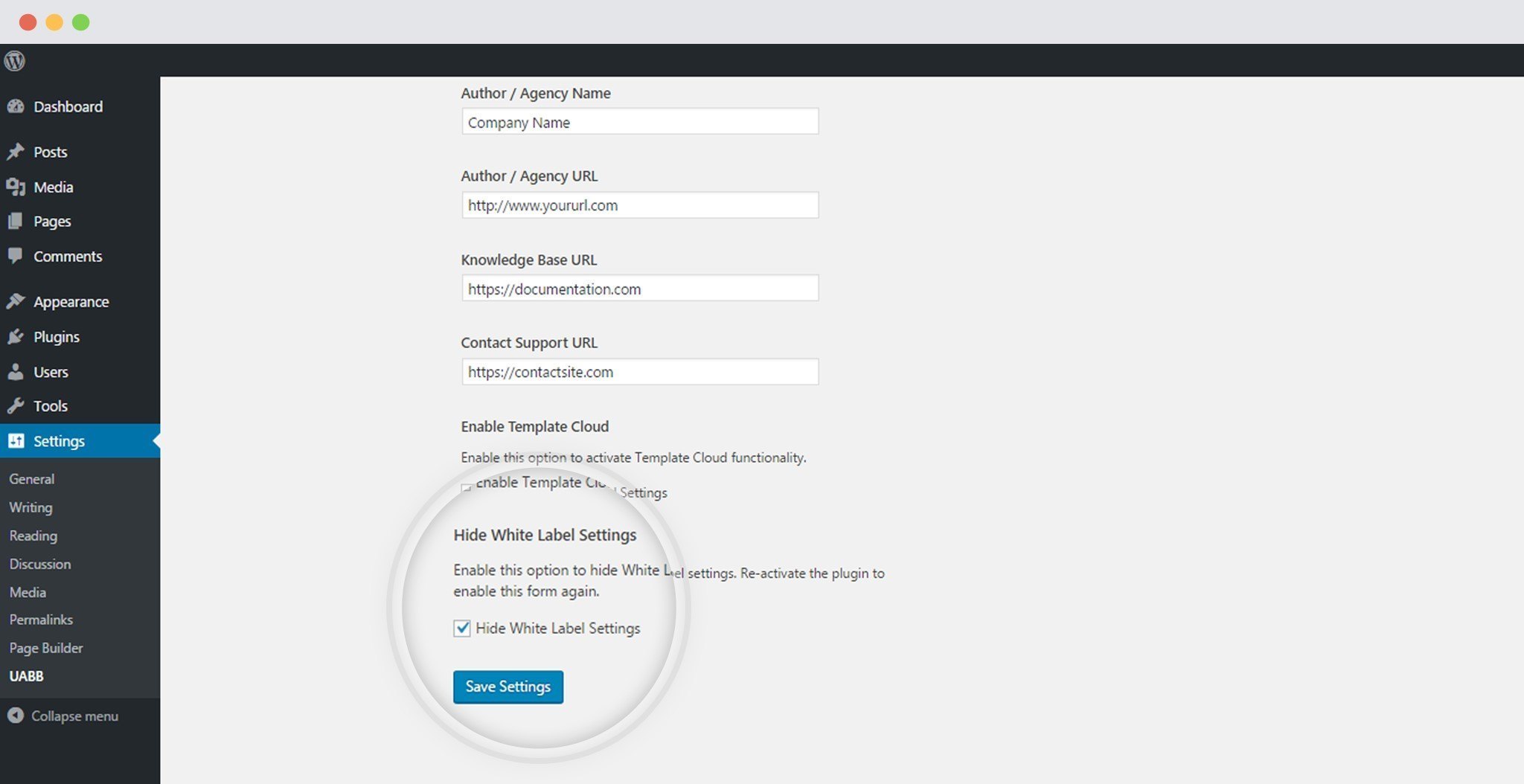 Note: If you wish to see these (Branding – White Label) settings again after hiding them, you can do so by re-activating the plugin from the plugins page.