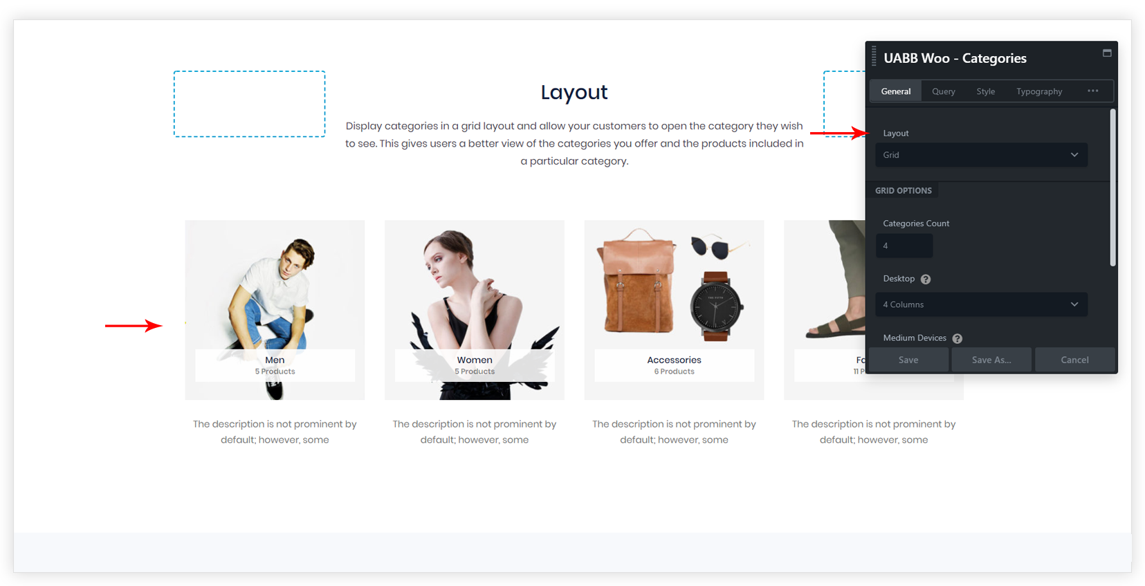 The Woo – Categories module of the UABB allows you to display all your product categories on a single page.